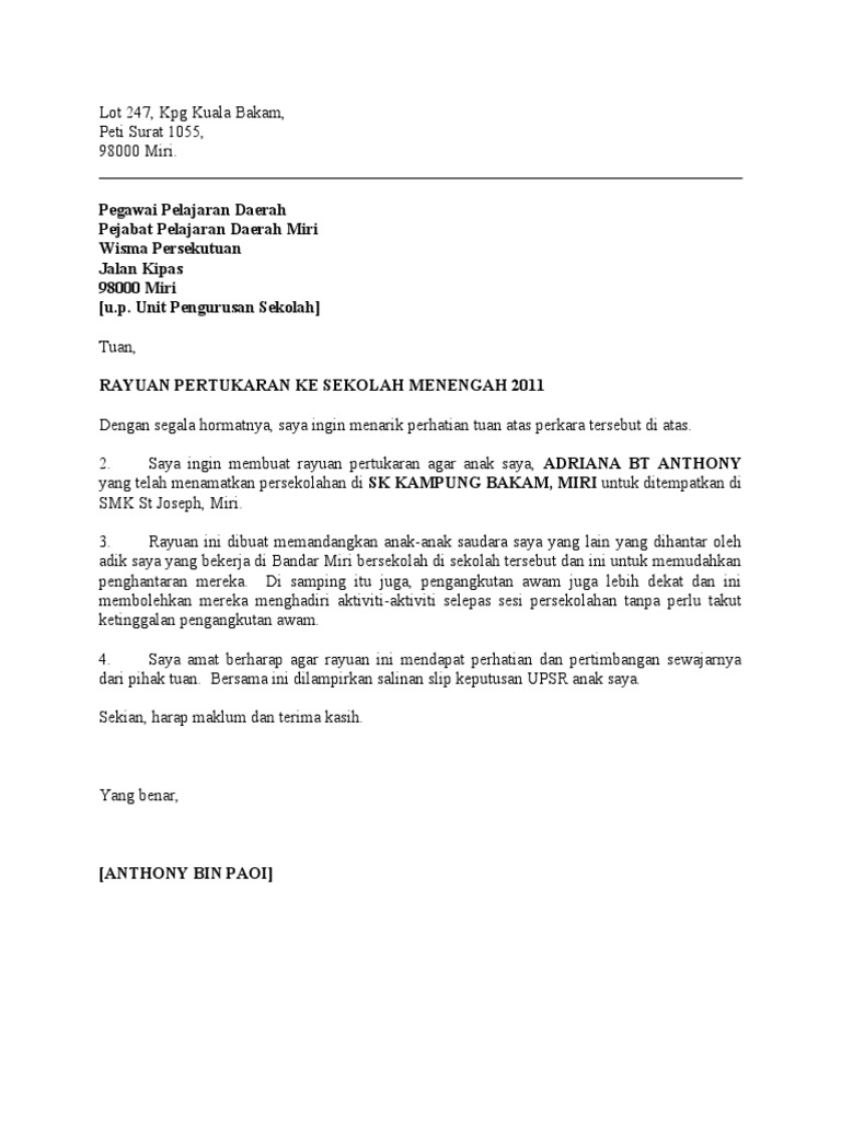 Contoh Surat Rasmi Permohonan Tukar Sekolah Srasmi Otosection